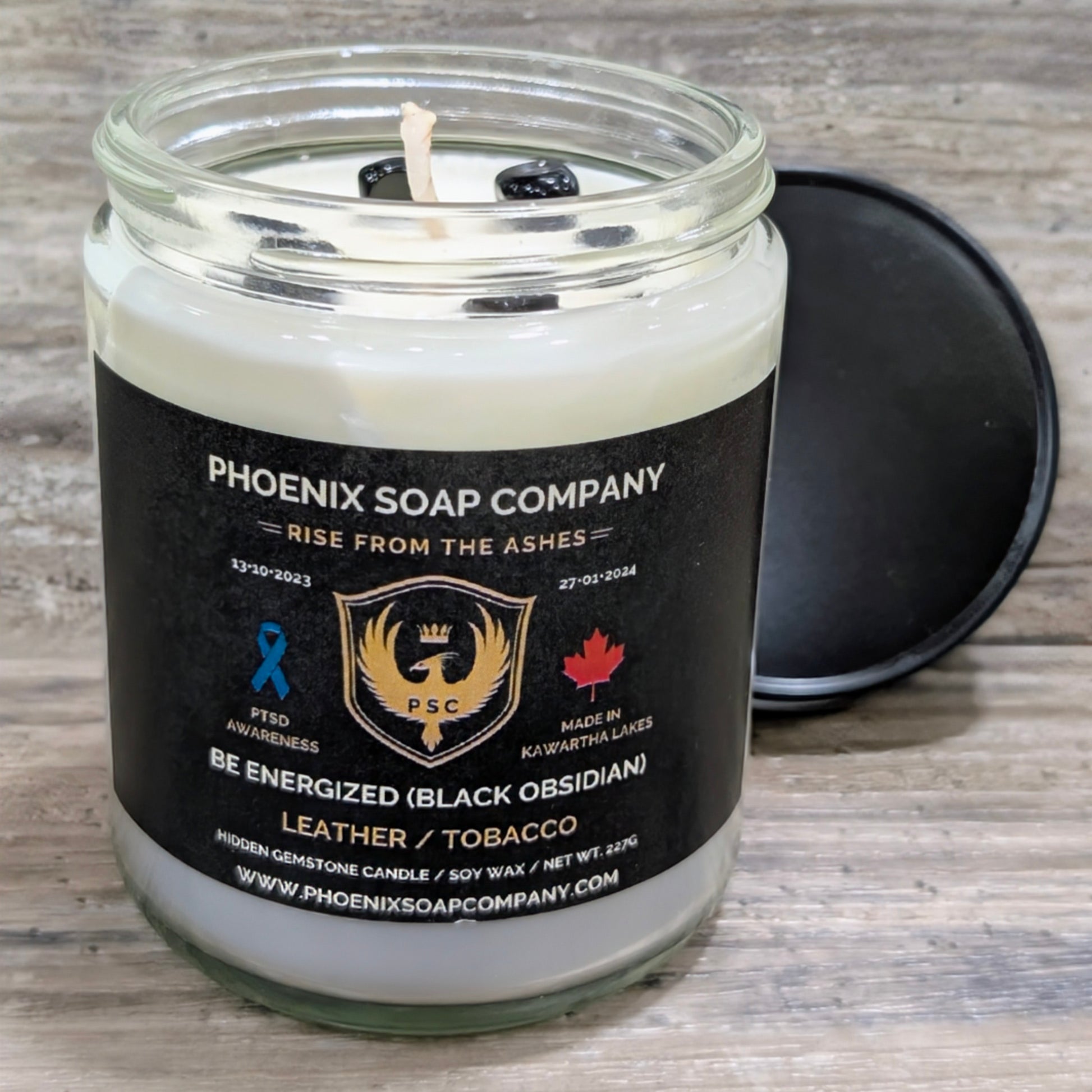 Black Obsidian "Be Energized" Hidden Gemstone Candles (Man Cave)